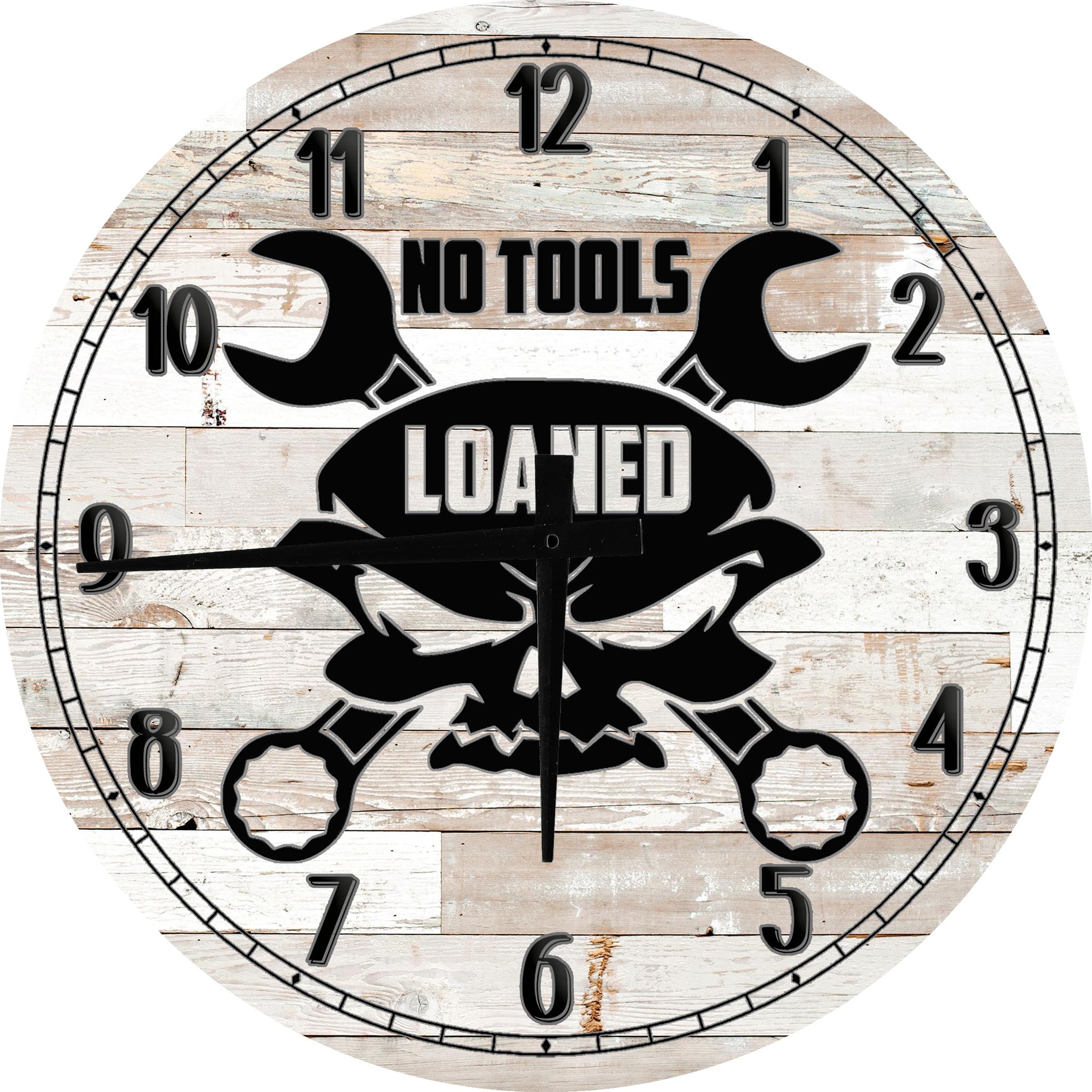 Wood Wall Clock 12 Inch Garage Wall Art No Tools Loaned Skull Wrenches Mechanic Garage Clock Round Small Battery Operated White Walmart Com